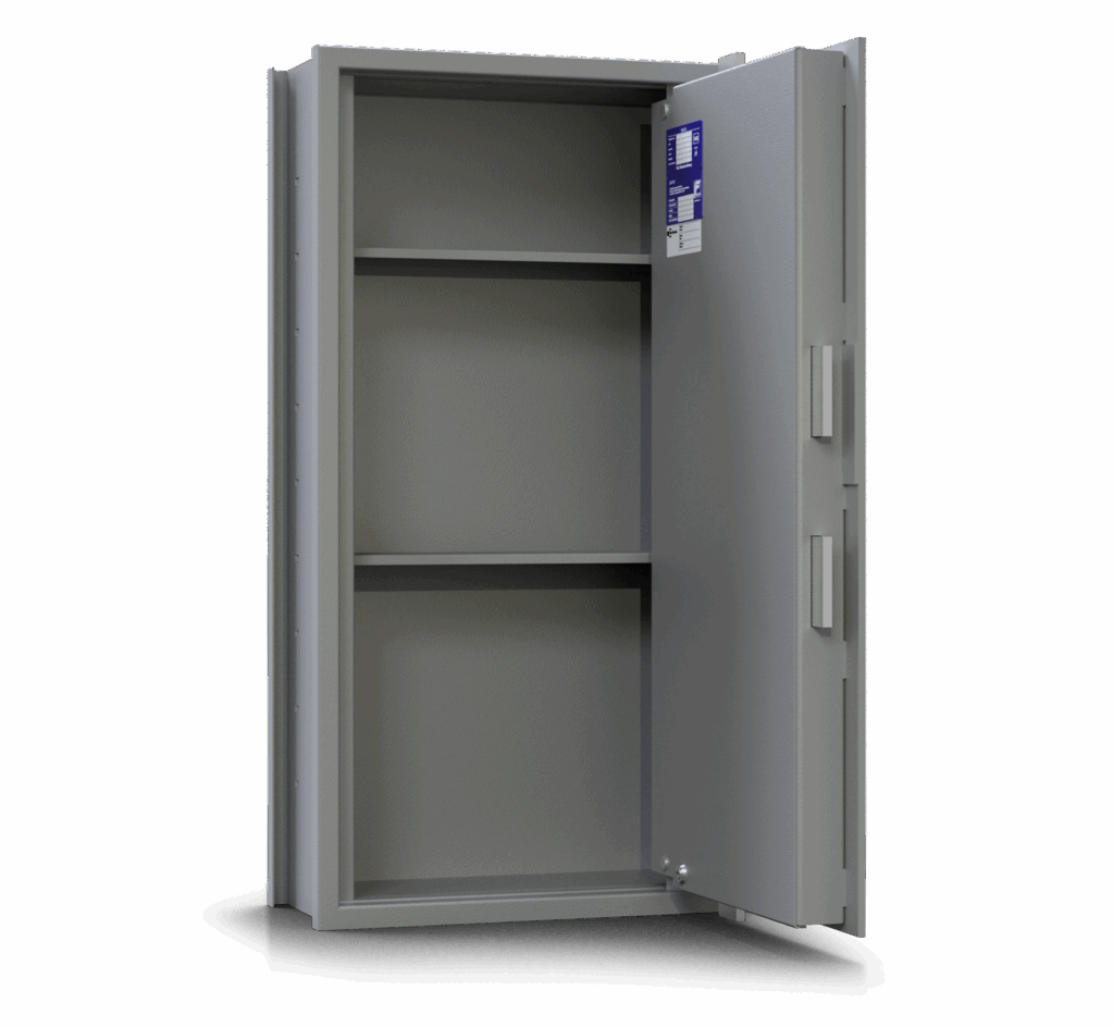 Standardmäßig werden die AMS-Tresore mit einem Doppelbartschloss mit zwei Schlüsseln geliefert. Optional können Sie Ihren Tresor mit einem Elektronikschloss oder weiteren Schlossmodellen ausstatten.