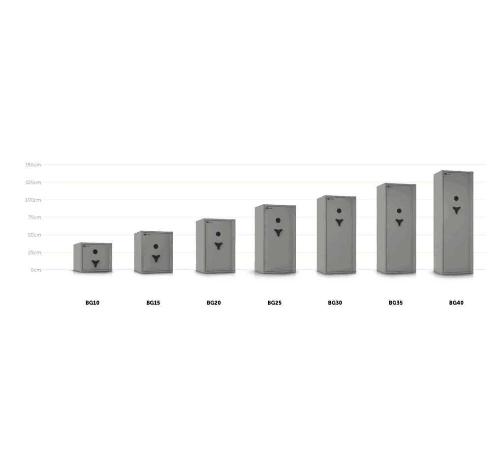 Standardmäßig werden die BG-Tresore mit einem Doppelbartschloss mit zwei Schlüsseln geliefert. Optional können Sie Ihren Tresor mit einem Elektronikschloss oder weiteren Schlossmodellen ausstatten. Ab BG15 ist der Einbau eines Elektronikschlosses mit mechanischem Notschloss (Combi B90) sowie Doppelsperren (zwei Schlösser gleichzeitig) möglich.