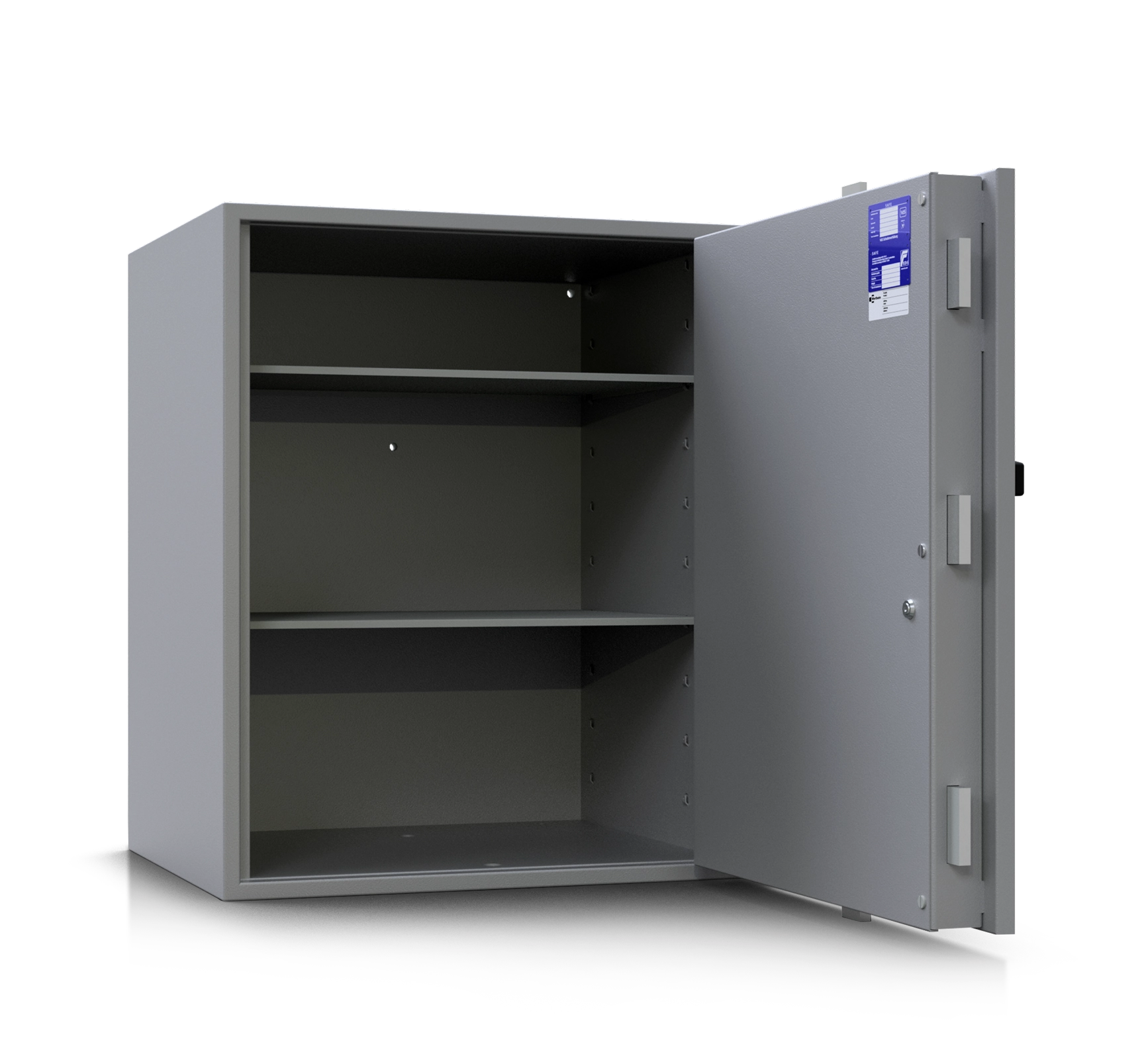 Standardmäßig werden die BWS-Tresore mit einem Doppelbartschloss mit zwei Schlüsseln geliefert. Optional können Sie Ihren Tresor mit einem Elektronikschloss oder weiteren Schlossmodellen ausstatten. Bei allen Modellen ist der Einbau eines Elektronikschlosses mit mechanischem Notschloss (Combi B90) sowie Doppelsperren (zwei Schlösser gleichzeitig) möglich.