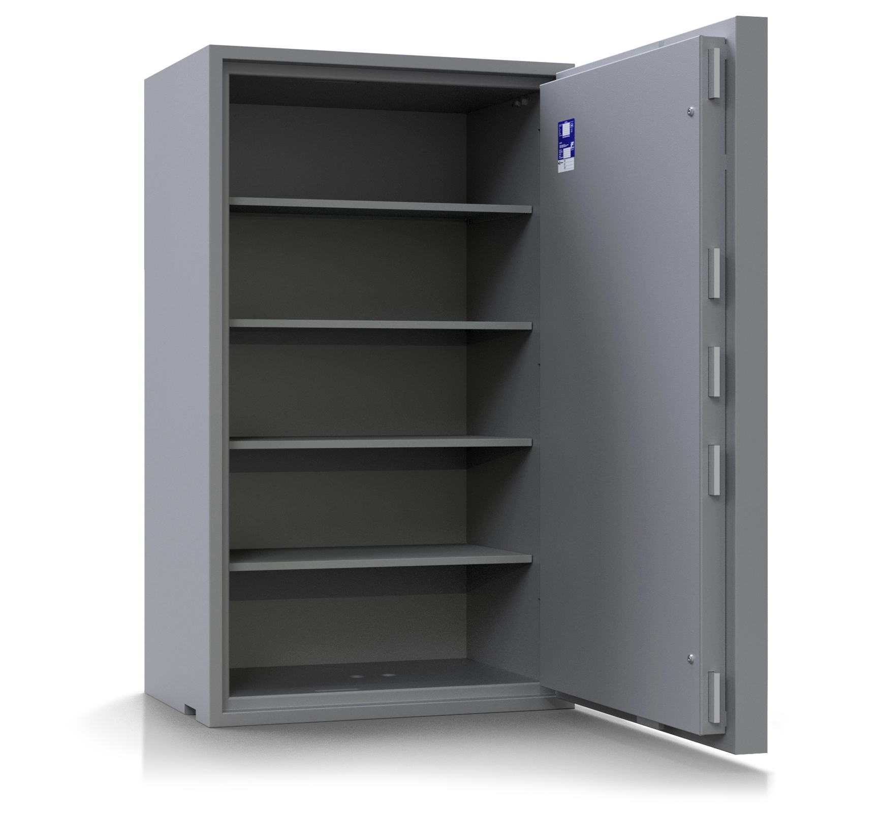 Optional kann das Türband noch weiter außenliegend bestellt werden, sodass bereits bei einem Öffnungswinkel von 90° die volle Innenbreite des Tresors genutzt werden kann. Dies ist besonders praktisch, wenn Sie zusätzliche Innenausstattungen wie Schließfächer bestellen.