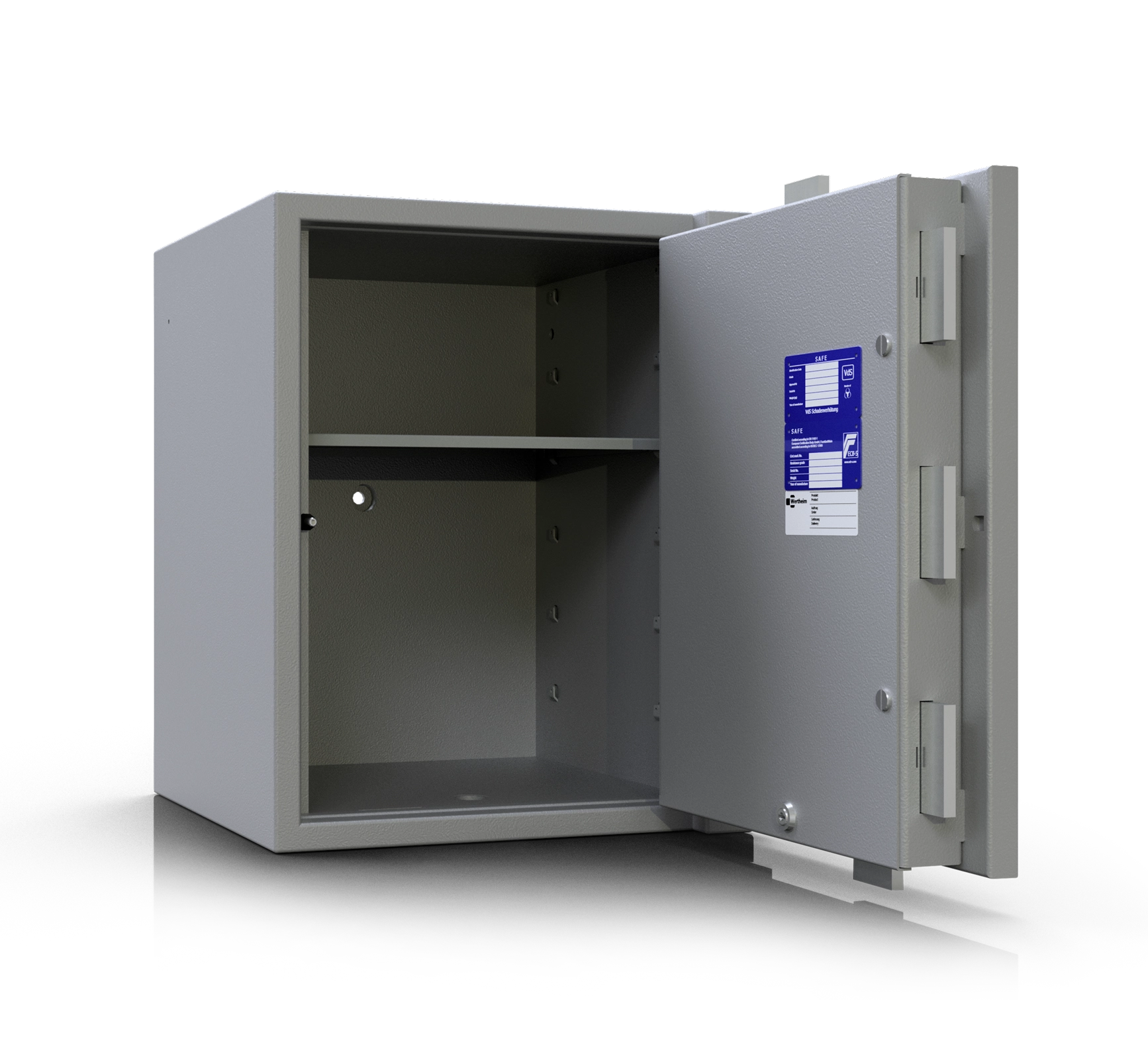 Das Tรผrband ist standardmรครŸig rechts angeschlagen und kann bei jedem Modell ohne Aufpreis mit Linksanschlag bestellt werden. Durch das fรผr Wertheim typische, auรŸenliegende Tรผrband wird ein Tรผrรถffnungswinkel von bis zu 180ยฐ ermรถglicht. Dadurch kann die gesamte Innenbreite des Tresors bequem genutzt werden.