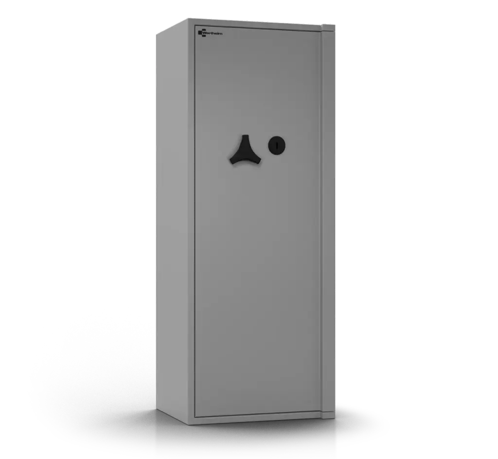 Dank innovativer Konstruktionsmethoden ist es uns gelungen, einen zertifizierten Tresor in Widerstandsgrad I (versicherbar bis zu €65.000 im Privatbereich) ohne den Einsatz von Füllmaterialien zu entwickeln. Dies reduziert den CO₂-Fußabdruck und erleichtert durch die Gewichtseinsparung sowohl den Transport als auch die Auswahl möglicher Aufstellorte. Durch den neuen, massiveren Aluminium-Griff konnte nicht nur die Haptik verbessert, sondern auch der Kunststoffeinsatz reduziert werden.