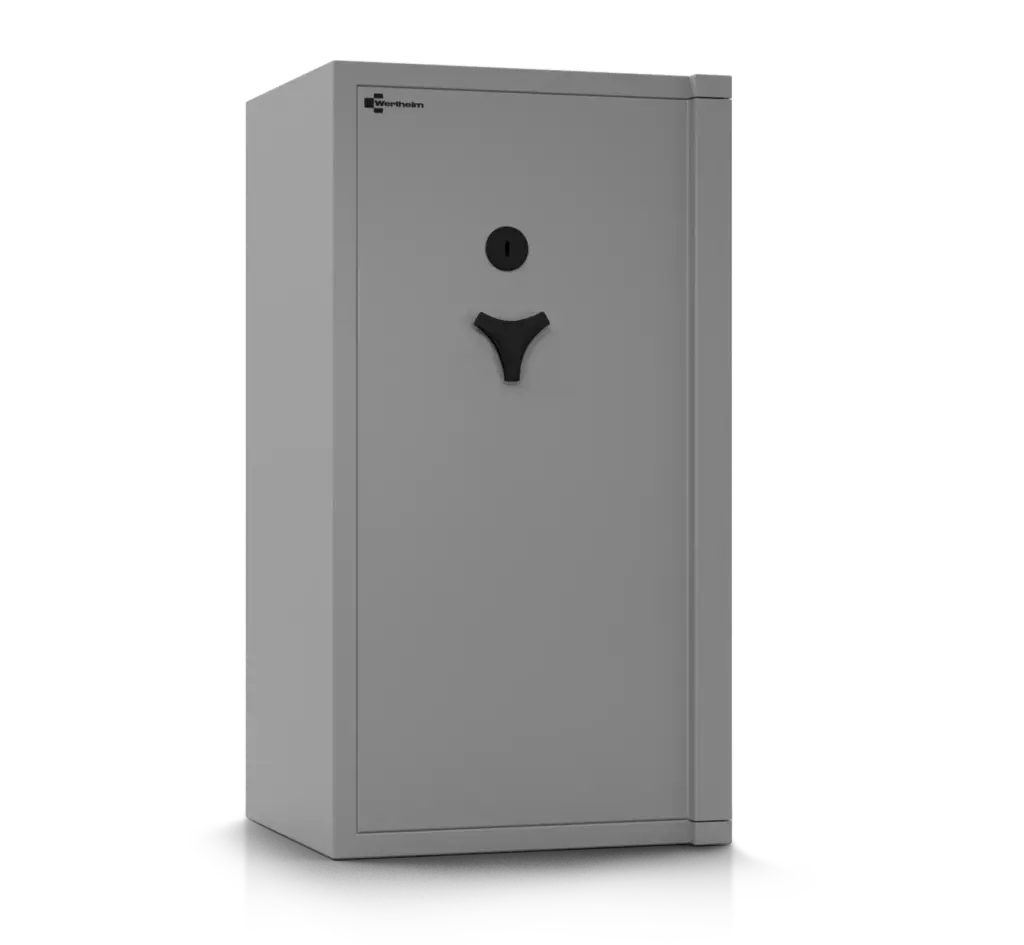 Das Türband ist standardmäßig rechts angeschlagen und kann bei jedem Modell ohne Aufpreis mit Linksanschlag bestellt werden. Durch das für Wertheim typische, außenliegende Türband wird ein Türöffnungswinkel von bis zu 180° ermöglicht. Dadurch kann die gesamte Innenbreite des Tresors bequem genutzt werden.