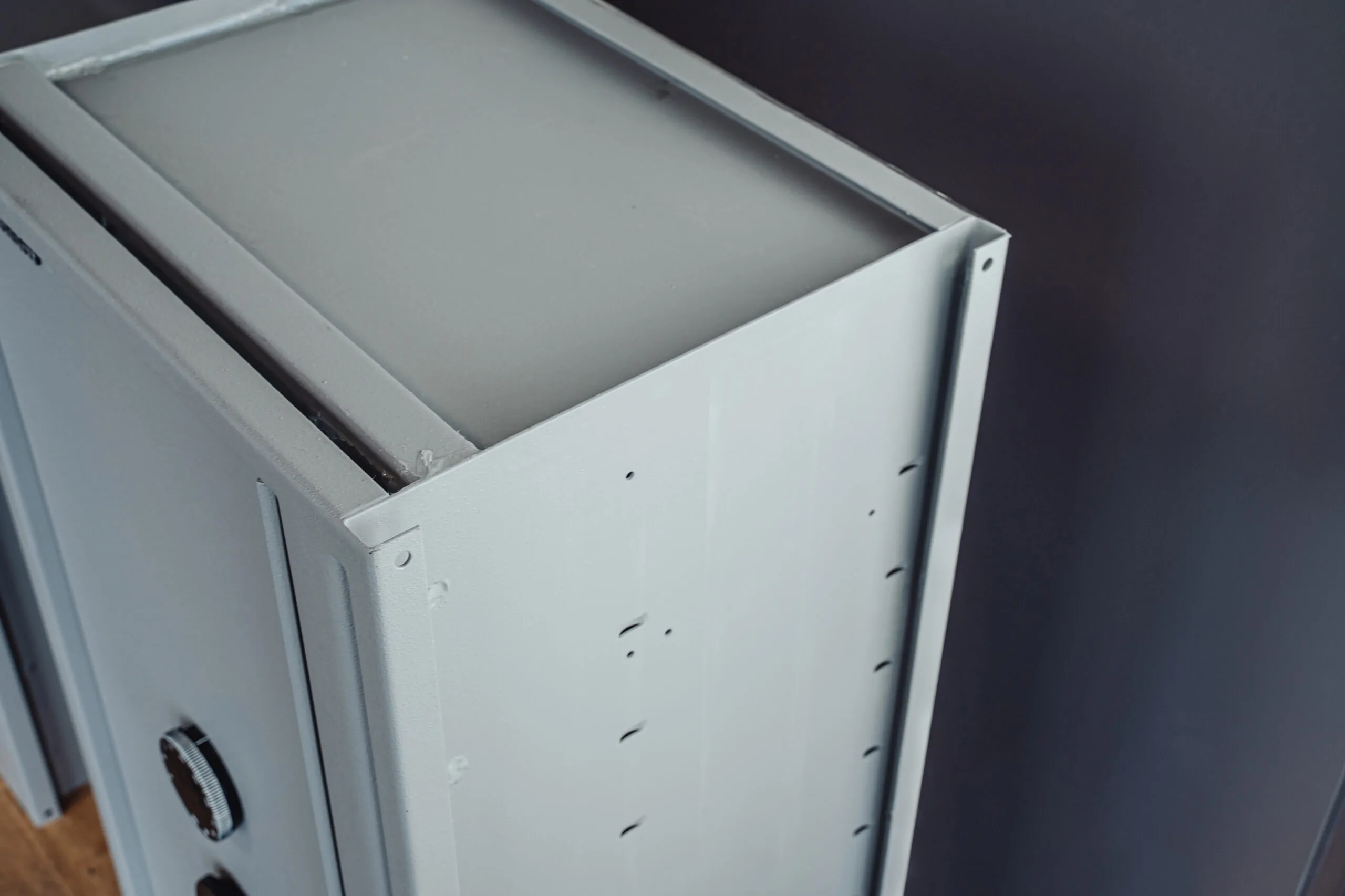 Optional kann die Rückwand des Tresors ebenfalls gepanzert werden, um die Tiefe des Safes an die Dicke des Mauerwerks anzupassen. Dies bietet zusätzlichen Schutz, insbesondere wenn hinter der Tresor-Rückwand nur eine geringe Mauerstärke vorhanden ist, und verhindert das Eindringen durch die Rückwand.