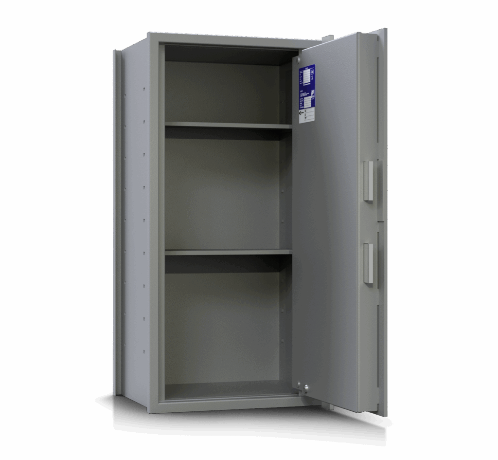 Standardmäßig werden die AMS-Tresore mit einem Doppelbartschloss mit zwei Schlüsseln geliefert. Optional können Sie Ihren Tresor mit einem Elektronikschloss oder weiteren Schlossmodellen ausstatten.