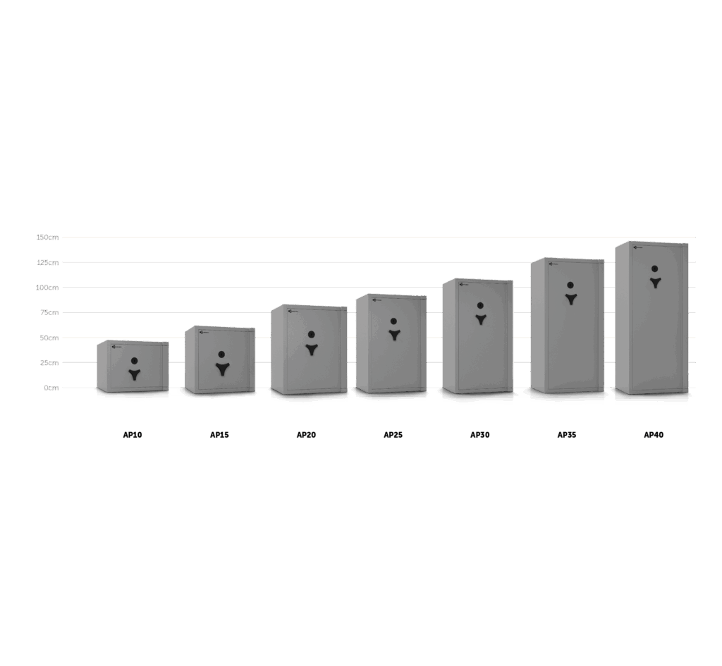 Die Tresore der AP-Serie entsprechen der europäischen Norm EN1143-1 und sind im Widerstandsgrad I zertifiziert. Die AP-Tresore mit Brandschutz sind nach der EN15659 geprüft und erfüllen LFS30 (Modell AP10 – LFS60). Sie bieten somit 30 Minuten (AP10 – 60 Minuten) Feuerschutz für Papierdokumente. Ihre Werte in einem AP-Tresor können bis zu € 65.000 im privaten und bis zu € 20.000 im gewerblichen Bereich versichert werden (Versicherungswerte können variieren – bitte erkundigen Sie sich bei Ihrer Versicherungsgesellschaft). Durch die Kombination von Einbruchschutz und Brandschutz bieten AP-Tresore umfassenden Schutz für Ihre wertvollen Dokumente.