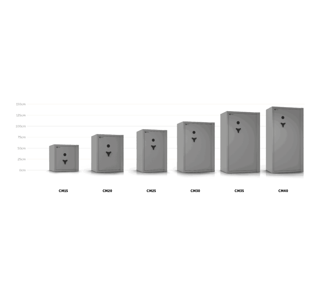 Die CM-Serie hat den Anspruch, mit geringen Außenabmessungen und maximalem Fassungsvermögen allen Anforderungen des Widerstandsgrades III gerecht zu werden. Die CM-Tresore sind ideal, wenn ein hoher Schutzbedarf für Wertgegenstände besteht und der verfügbare Platz am Aufstellort bestmöglich genutzt werden soll.