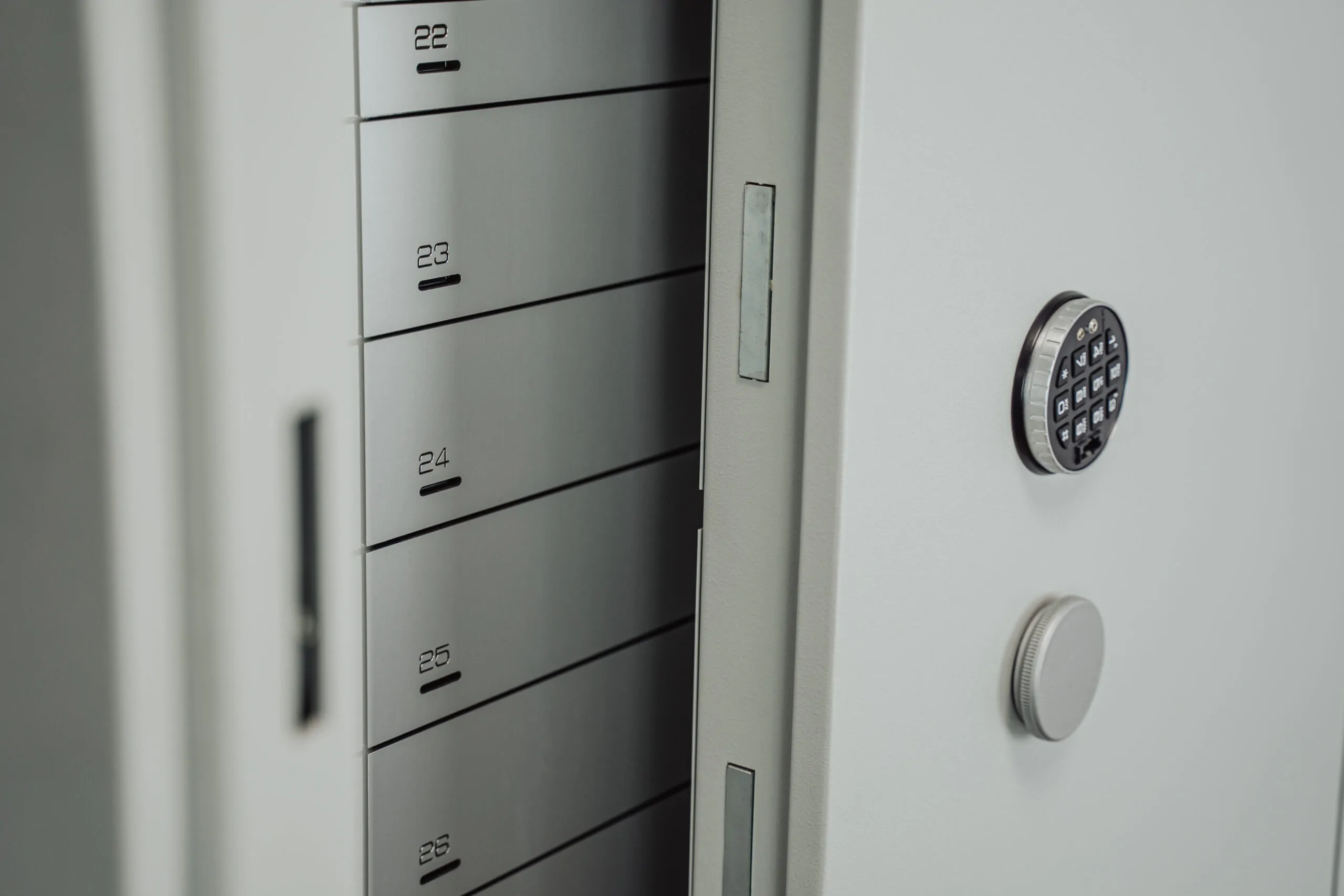 The BWP safe is equipped with a double-bit lock and two keys as standard. Optionally, you can equip your safe with an electronic lock or other lock models. The installation of an electronic lock with a mechanical emergency lock (Combi B90), as well as dual locks (two locks used simultaneously), is possible.